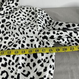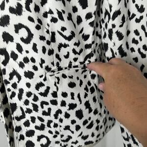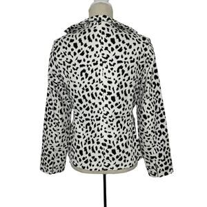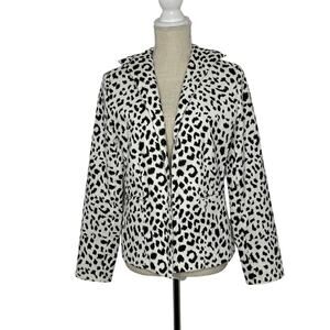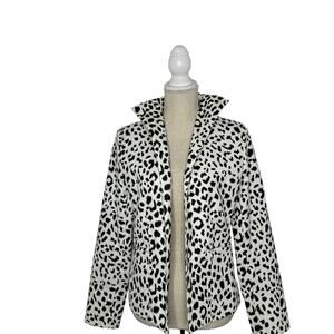 Neiman Marcus exclusive white leopard print jacket. Open front, fully lined. Front pockets. Soft, corduroy feel.