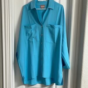 Never worn. Vibrant blue button down shirt. Features two front pockets. Relaxed fit with classic collar.