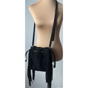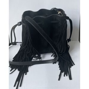 New $158 Madewell The Mini Drawstring Crossbody Black Suede Fringe Bucket Bag
