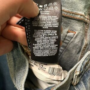 Smoke free, pet free warehouse. New without tags. Light vintage blue wash. Distressed. Slim straight fit.