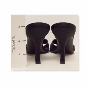 Black Silk Open Toe Slide Heels with Crystal Embellishments