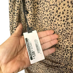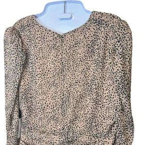 Brand New with Tags ASTR The Label Medine Midi Dress Leopard Animal Print Draped Front, Ruched, Front Slit Long Sleeve MSRP: $ 138