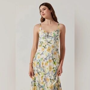 New! ASTR the Label Floral Corset Satin Dress Yellow Cream Floral 45285