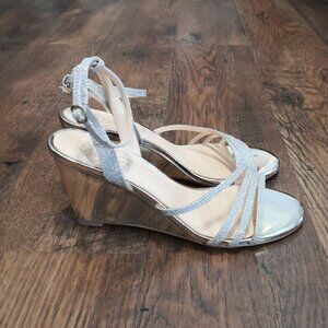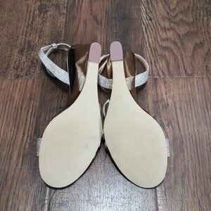 New Badgley Mischka Soft Gold Glitter Strappy Sandals Wedges Size 8