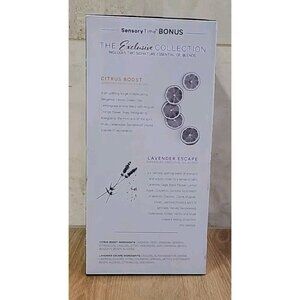 This model also includes two signature essential oil blends including citrus boost for the morning and lavender escape for the evening.