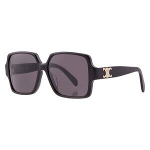Celine Sunglasses. Series TRIOMPHE.. Color code: 01A. Shape: Square. Lens Width: 60 mm. Lens Bridge: 15 mm. Arm Length: 135 mm. 100% UV protection. Non-Polarized. Frame Material: Acetate. Frame Color: Shiny Black. Lenses Type: Smoke. Rim Style: Full-Rim.. Celine TRIOMPHE Smoke Square Ladies Sunglasses CL40316U 01A 60.