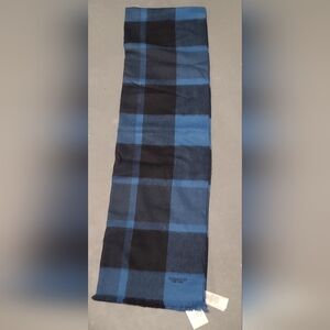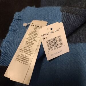New Coach Big Plaid Scarf Wool Cashmere. Blue/black. Fringe ends. 95% wool, 5% cashmere. Tags attached. Smoke free home.