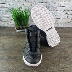 Inspired by the bold patterns the '90s-era, we've brought the heat to a striking mid silhouette with an eye-catching black on black pattern. Leather and reflective materials with a mesh tongue up her style game. Heel arch wins it. Like a flash of lighting, the VLTG sneaker is born.