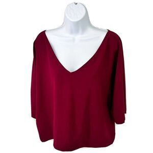 New Cupcakes and Cashmere Red Maroon Boxy V Neck Top Shirt 1/2 Dolman Sleeves