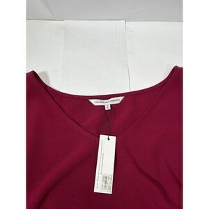 New with tags. Cupcake and Cashmere. Size Small. Solid Cranberry Maroon Red Color. Boxy Shape with V-neck. Top Shirt. Half Length Size Dolmans sleeves style. See flat lay photo for better shape understanding. Measurements in photos. Tag states color as red velvet however material is not a plush velvet material. Just color name. No rips holes or stains. Comes from a smoke free home environment.