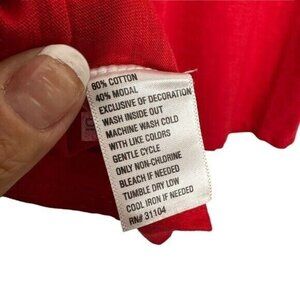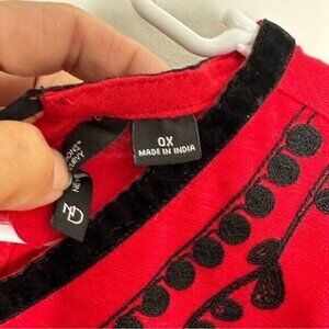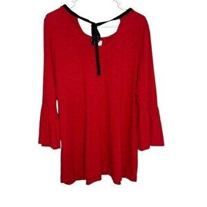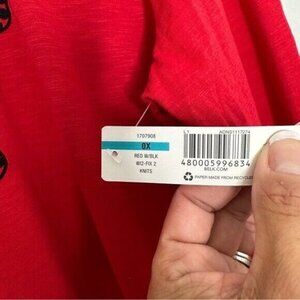 New Directions Curvy Size 12 Red Black Embroidered Top W/Bell Sleeve