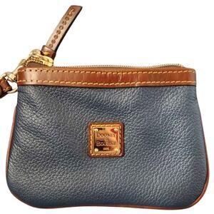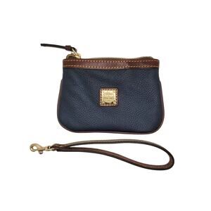 Navy blue and gold hardware wristlet. Comes with original paperwork for warranty, see images. Perfect condition. Wristlet strap is detachable. No interior pockets, but does have interior keyring