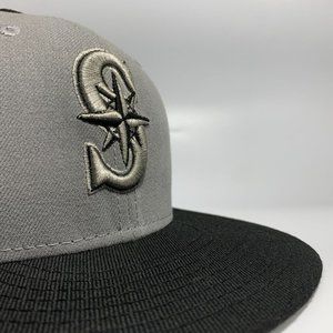 New Era 59Fifty Seattle Mariners 7 1/8 Fitted Hat MLB Grey Black Alternate Color