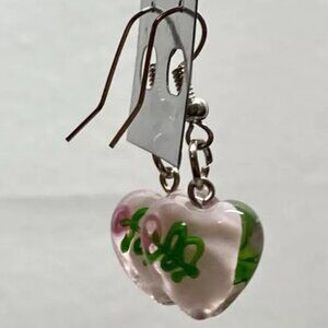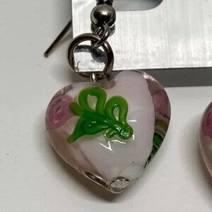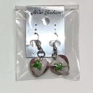 New Fashion Brand Earrings Murano Style Pink Glass Heart Beads Dangle Hook NWT
