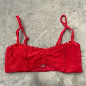 New! Frankie’s Bikinis Cleo Ribbed Bikini Top Red 10711