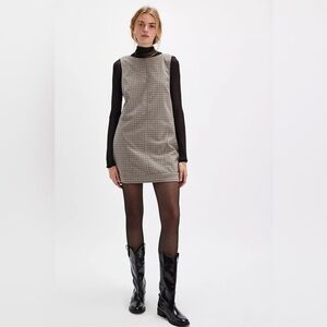 The perfect piece for styling solo or layering over a long-sleeve, this effortlessly essential mini dress is featured in a sleeveless, shift-inspired silhouette and perfectly printed plaid design for the ideal menswear-inspired touch.
