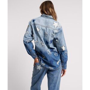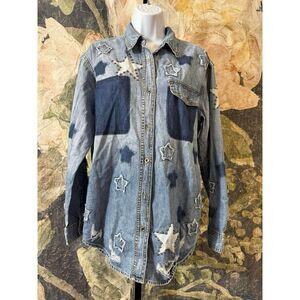 New Free People x One Teaspoon JOHNNY BLUE STAR CLASSIC EVERYDAY SHIRT Size S