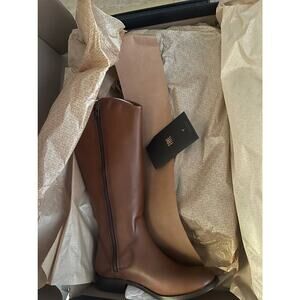 Exposed stitching highlights the slightly slouchy shaft of this chic, Western-inspired knee-high boot.