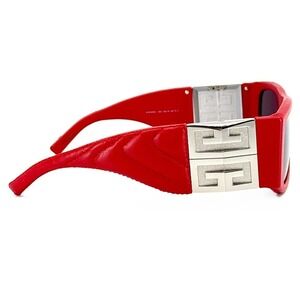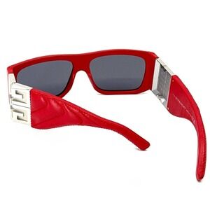 Givenchy contemporary rectangle sunglasses feature quilted leather frames with oversized silvertone statement 4G hinges.
