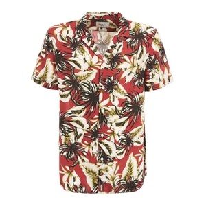 Printed GUESS shirt in beige and red color with flower design. Short sleeve and collar. Left chest pocket.