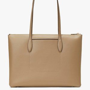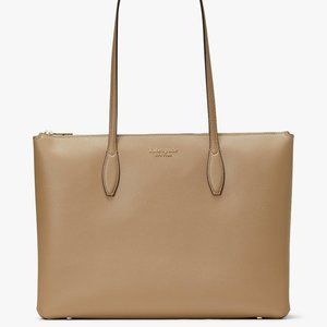 New Kate Spade All Day Large Zip-Top Tote Crossgrain Leather Timeless Taupe