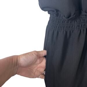 Brand New without Tags MAX STUDIO London Black Mock Neck Halter, Keyhole Stretch Crepe Jumpsuit, Smocked Elastic Waist, Wide Leg Pockets MSRP: $178