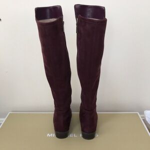 New! Michael Kors Size 5.5M Damson color bromley stretch tall boots in suede like texture. Beautiful color and extremely classy. Side zipper and 1” heel. Comes with the box.