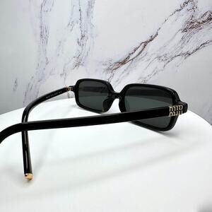 New MIU MIU Sunglasses Black Square Rectangle Acetate Gold Metal Logo Authentic