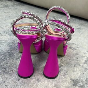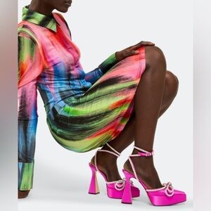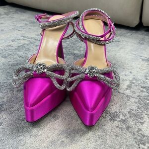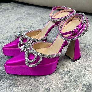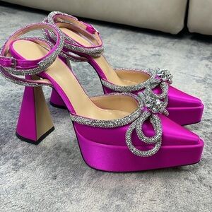 New Mach & Mach Double Bow Platform Crystal Sparkle Pointed Toe Heels Sz 37