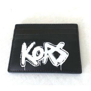 New Michael Kors Cooper Tall Card Case Vegan Leather Black / White