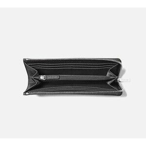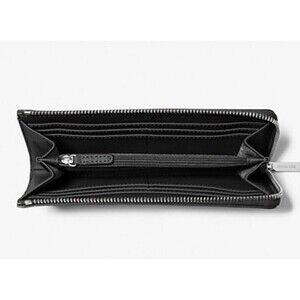 New Michael Kors Jet Set Travel Large Leather Quarter-Zip Wallet Black / Silver