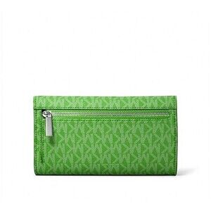 New Michael Kors Jet Set Travel Large Logo Trifold Wallet Jungle Green Multi