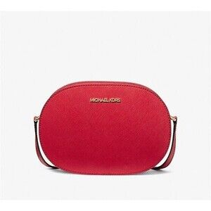 New Michael Kors Jet Set Travel Medium Saffiano Leather Crossbody Bright Red