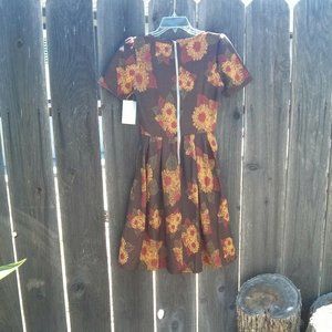 New NWT Brown & Yellow Floral Print Dress Size XS Feminine Retro Cottagecore