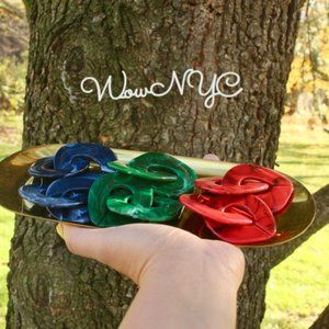 The Overlapping circle Earrings, a pair of Navy Blue tortoise drop Large thick chunky hoop Layered circle Chain drop Dangle earrings