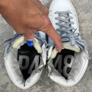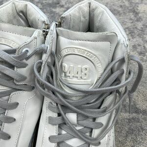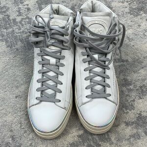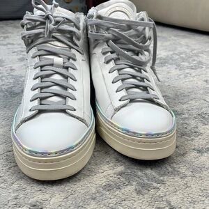 New P448 F22 Taylor Platform High Top Sneaker Side Zip Iridescent Strip Sz 42