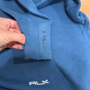 Ralph Lauren RLX golf preppy athletic luxe country clubcore classic sport sweater pullover cotton blend mock neck blue cozy elevated menswear fall layering XS soft versatile