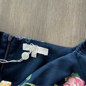 New Revolve WAYF Floral Navy Tie Front Poof Sleeve Dress