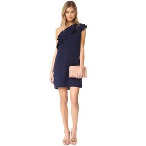 New! SHOSHANNA Women's Ruffled One-Shoulder Bond Dress Navy Blue Size 12
