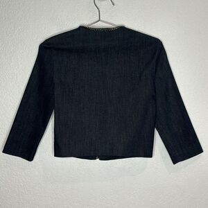 New SUSAN BENDER Denim Cropped Cardigan Jacket w/ Chain Size 4