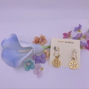 New Tory Burch Gold Logo Fish Hook Dangle Earrings