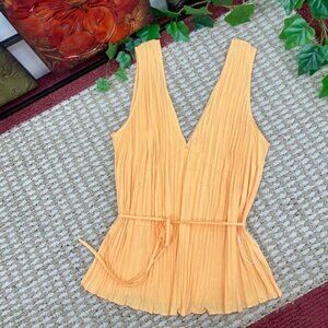New Vince Crushed Double V-Neck Tank in Light Tangerine Size S