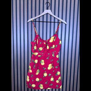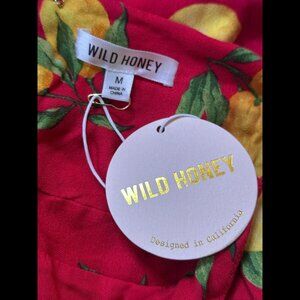 New Wild Honey Mini Dress Medium Red Lemon Print Front Tie Adjustable Strap