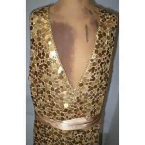New Womens 10 NWT Matthew Williamson Designer Dress Gold Sequin Sleeveless Beads