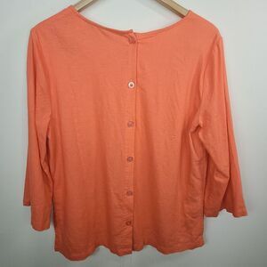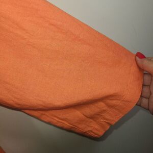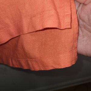 Light, airy and breathable. Comfortable linen blend V nevk button back and 3/4 sleeves. Dress up or wear casually.