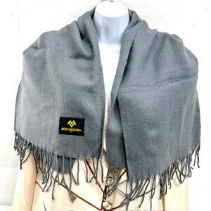 New in Bag MOLTI VALENTINO Italy Scarf Men/Women 100% Wool, Gray Fringed 68"x28