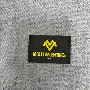 #73 New in Bag Molti Valentino scarf designed for both men or women, 100% Wool, 64"x28". color gray fringed accent, desinged in Italy made in Japan. Excellent Condition no mark no stain. NEW WITH BAG, Sell As IS