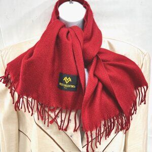 $72  New in Bag Molti Valentino scarf designed for both men or women, 100% Wool, 64"x28".  color red fringed accent, desinged in Italy made in Japan.  Excellent Condition no mark no stain, NEW with bag.  Sell As IS