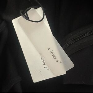 a loves a black dress with side zip closure, square neckline, scooped back and no pox. Waist 30”, bust 34”, sleeve 26” and length from waist-to-hem 16”. Brand new with tags attached.