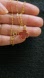 This stunning necklace features a solid 18k yellow gold paperclip chain with a striking red clover pendant. Perfect for adding a touch of elegance to any outfit. 16" long.